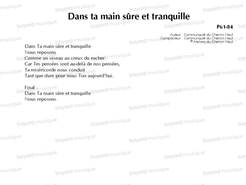 Dans ta main sûre et tranquille - P61-84