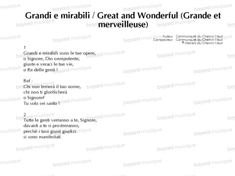 Grandi e mirabili / Great and Wonderful (Grande et merveilleuse)