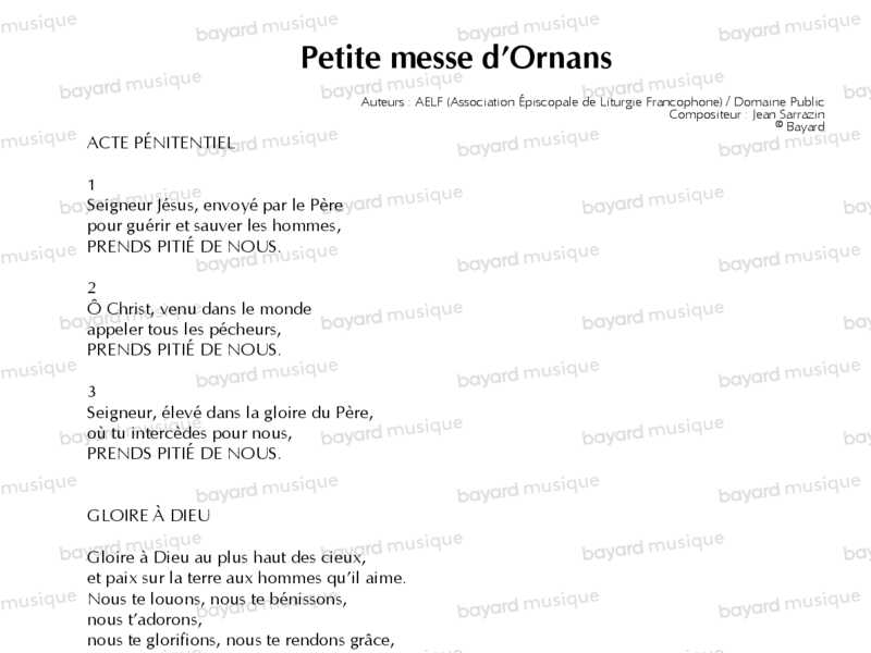 Comprend : Acte pénitentiel, Gloire à Dieu, Saint le Seigneur, Agneau de Dieu