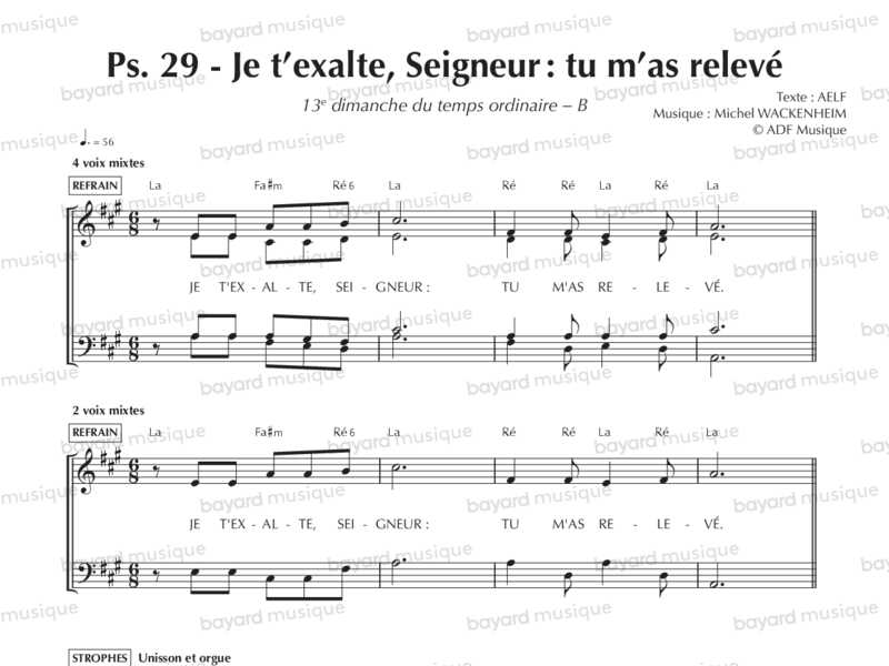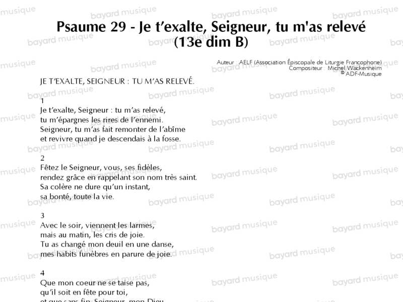 Psaume 29 - Je t’exalte, Seigneur, tu m'as relevé (13e dim B)