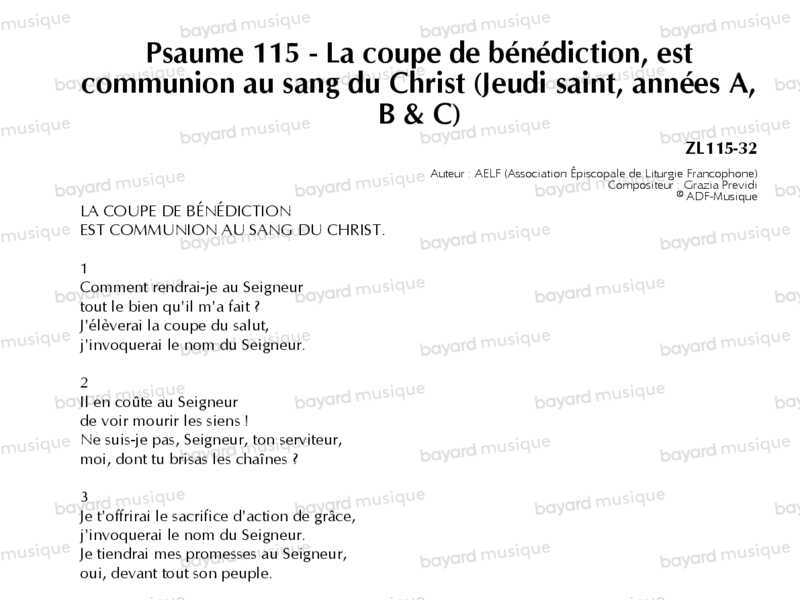 Psaume 115 - La coupe de bénédiction, est communion au sang du Christ (Jeudi saint, années A, B & C) - ZL115-32