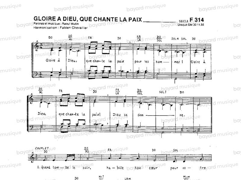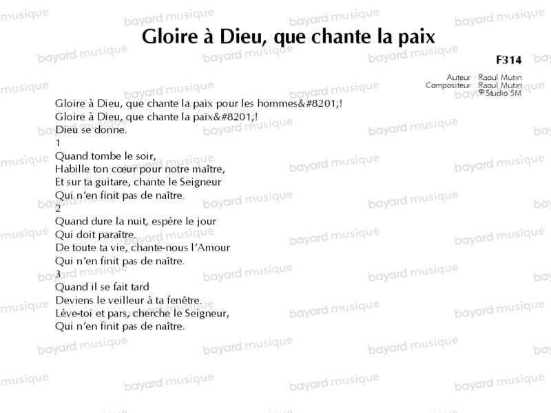 Gloire à Dieu, que chante la paix - F314
