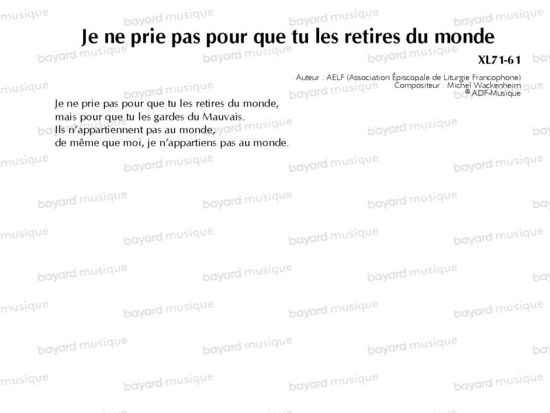Je ne prie pas pour que tu les retires du monde - XL71-61
