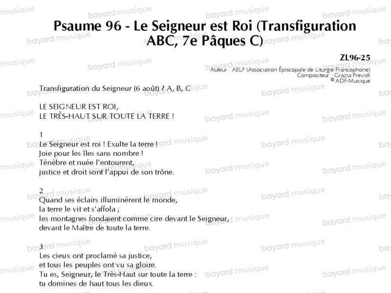 Psaume 96 - Le Seigneur est Roi (Transfiguration ABC, 7e Pâques C) - ZL96-25