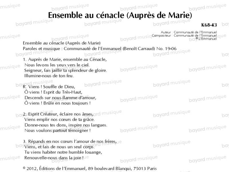 Interprété par la chorale de la communauté de l'Emmanuel.