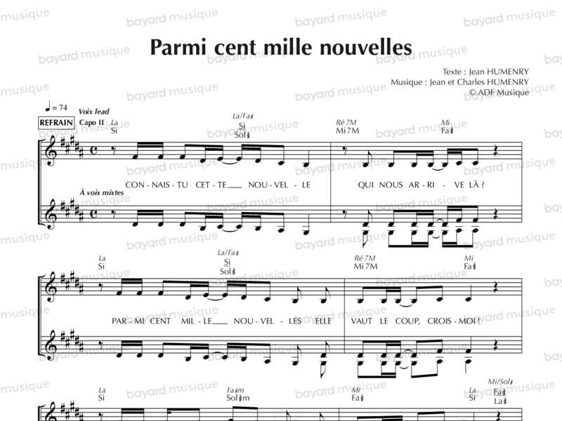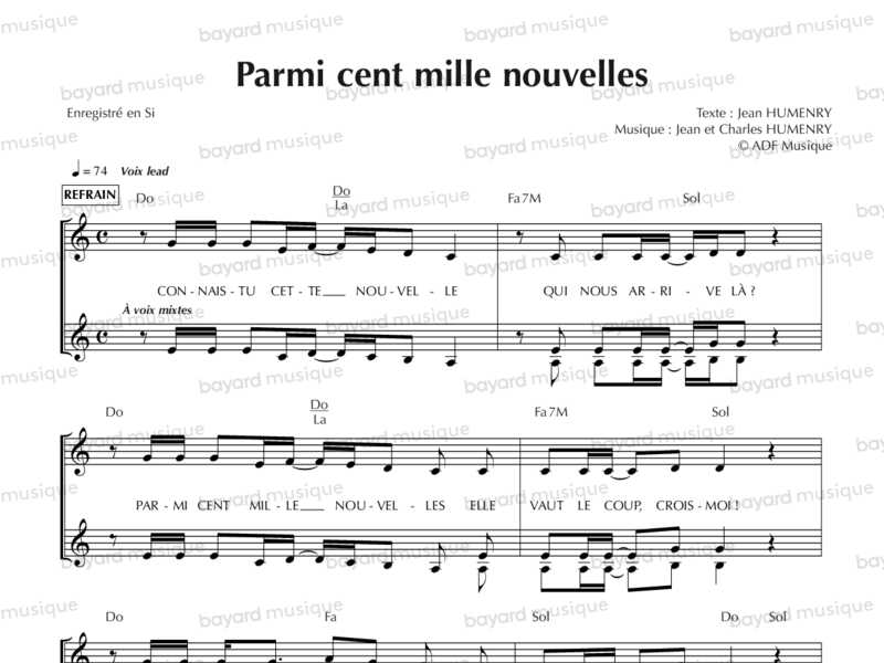 Deux partitions disponibles (version enregistrement en Si et version en Do)