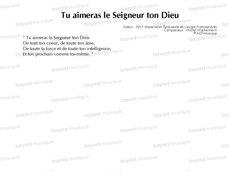 Tu aimeras le Seigneur ton Dieu