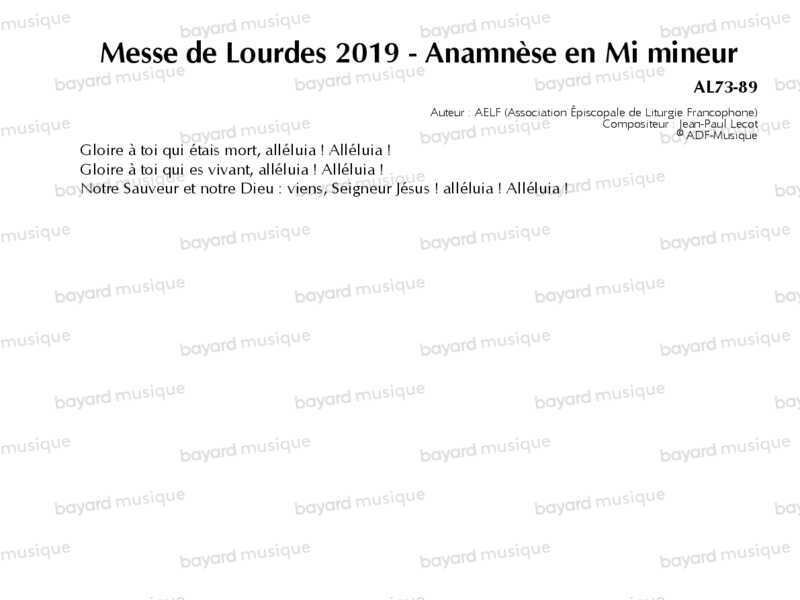 Messe de Lourdes 2019 - Anamnèse en Mi mineur - AL73-89