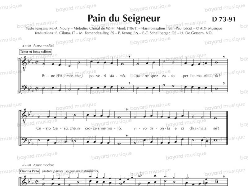 Partition en version multilingue (français, italien, espagnol, anglais, allemand, néerlandais)