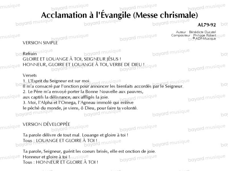 Acclamation à l’Évangile (Messe chrismale) - AL79-92