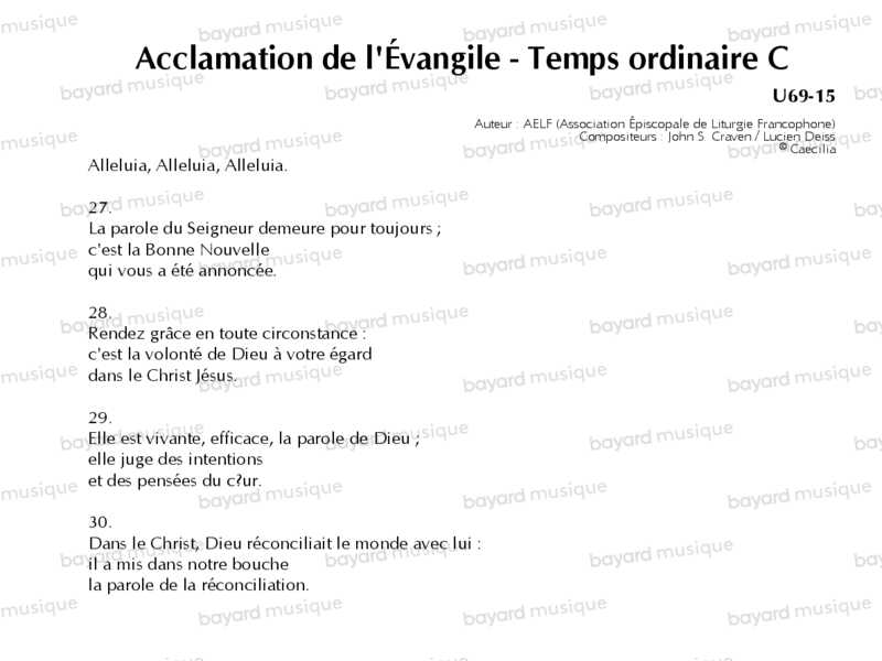Acclamation de l'Évangile - Temps ordinaire C - U69-15