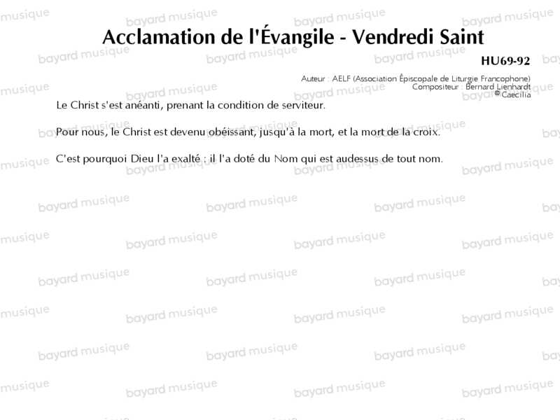Acclamation de l'Évangile - Vendredi Saint - HU69-92
