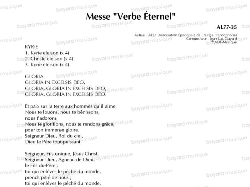 Comprend : Kyrie, Gloria, Alléluia, Sanctus, Agnus Dei