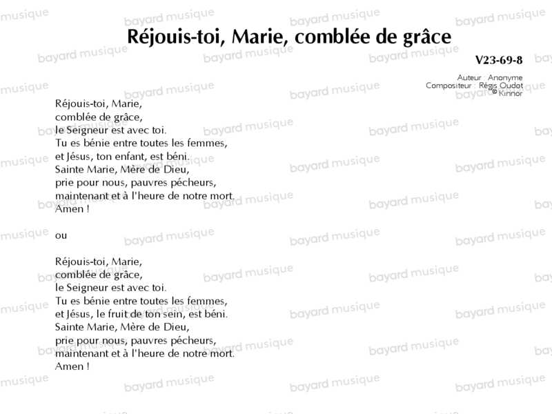 Réjouis-toi, Marie, comblée de grâce - V23-69-8