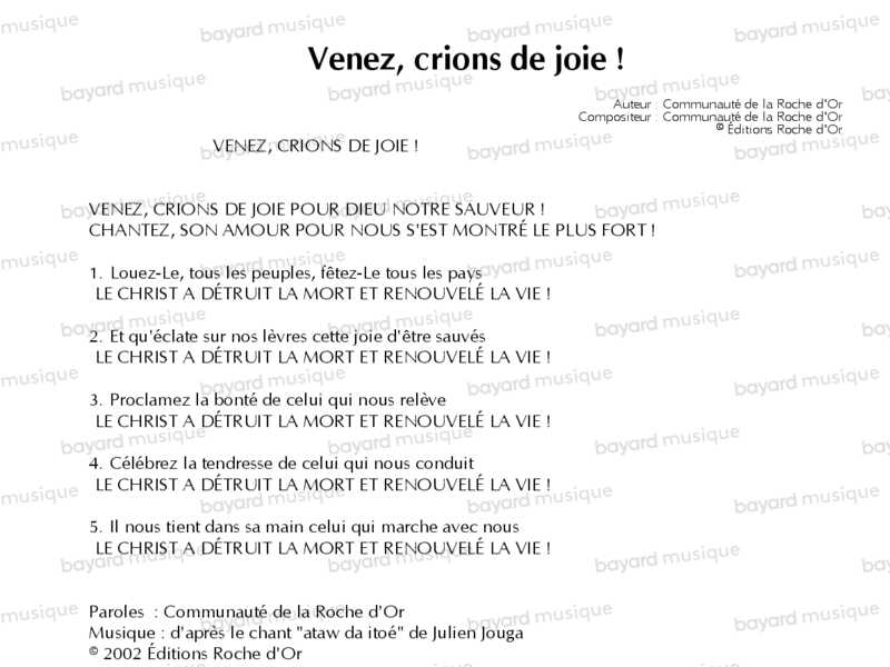 Venez, crions de joie !