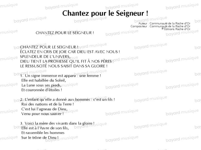 source biblique: Apocalypse chapitre 12, ce chant est conçu pour la fête de l'Assomption.