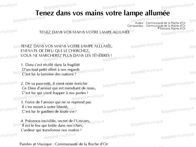 Chant écrit pour la fête de la présentation du Seigneur. Il trouve également bien sa place en temps de Carême.