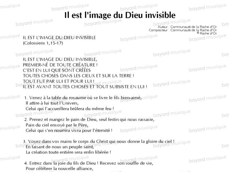D'après l'hymne de saint Paul aux colossiens (Colossiens 1,15-17) chant pour la communion.