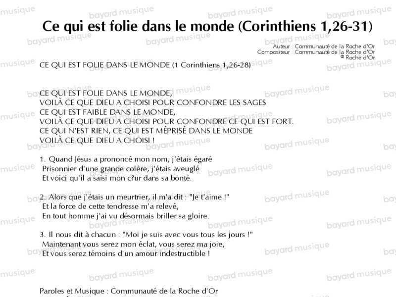 Interprété par le chœur de la communauté de la Roche d'Or.