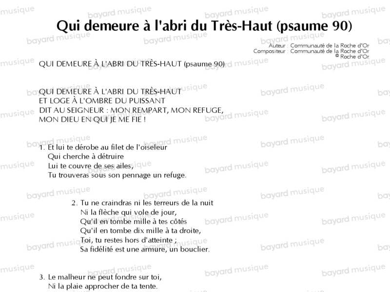 Qui demeure à l’abri du Très-Haut (psaume 90)
