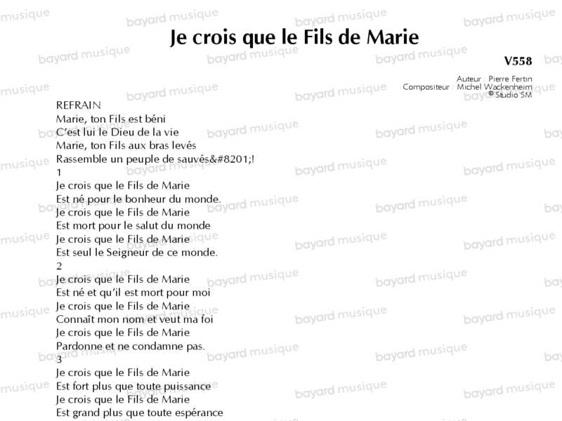 Je crois que le Fils de Marie - V558