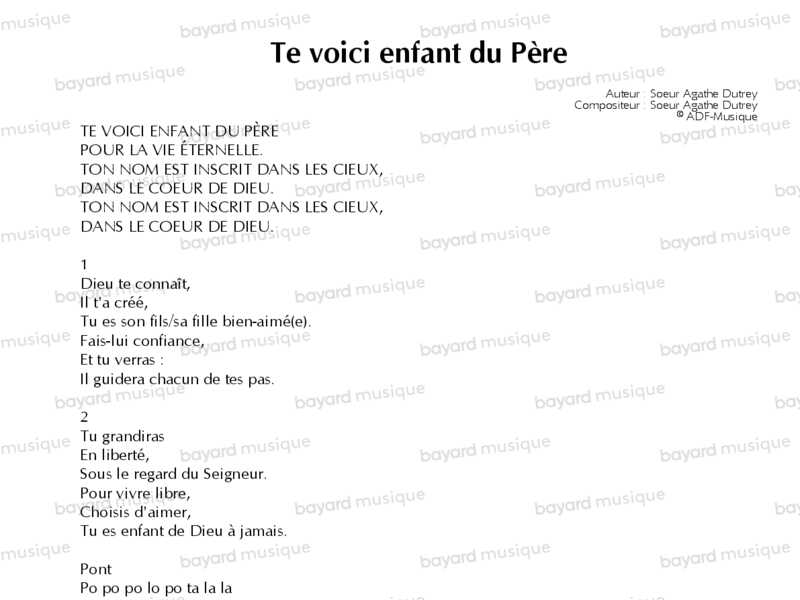 Interprété par Sœur Agathe et les élèves de l'école Notre-Dame-de-Bon-Port.