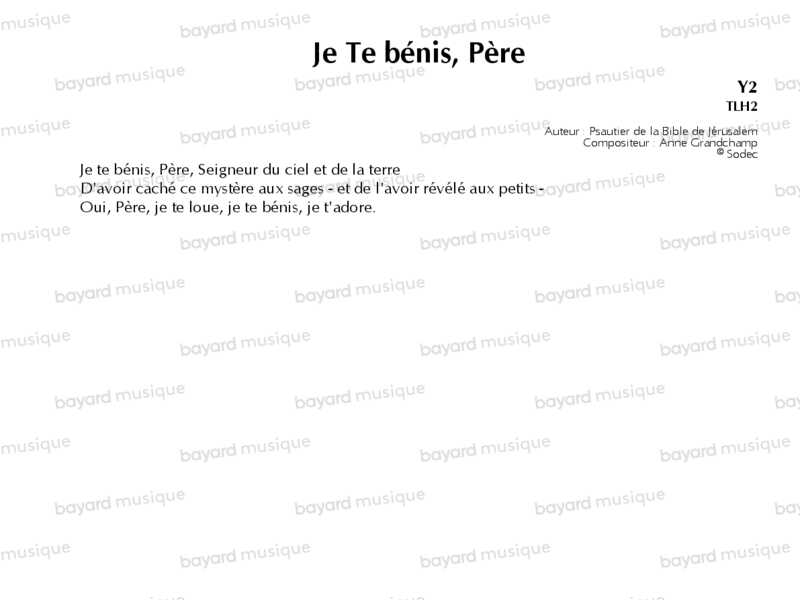 Je Te bénis, Père - Y2