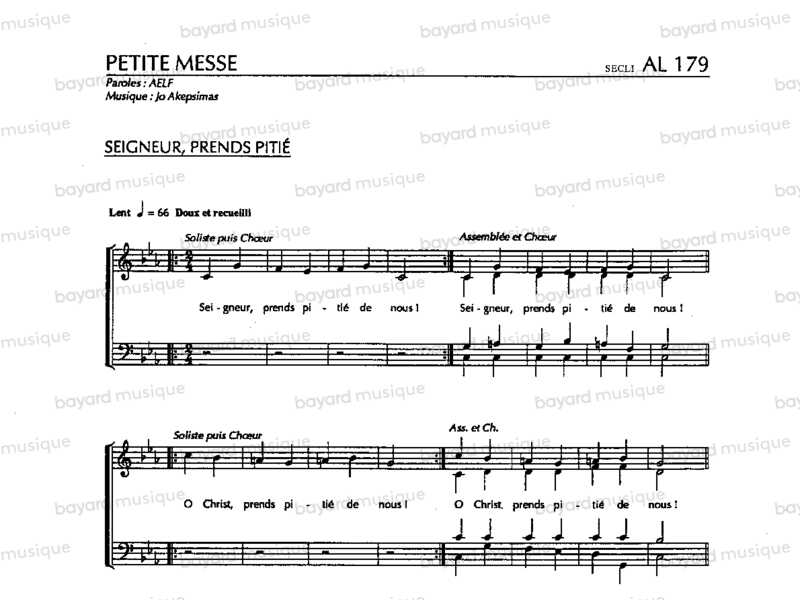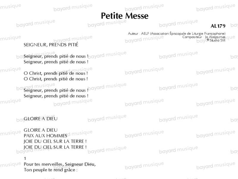 Comprend : Seigneur, prends pitié / Gloire à Dieu / Saint le Seigneur / Gloire à toi, qui étais mort / Agneau de Dieu