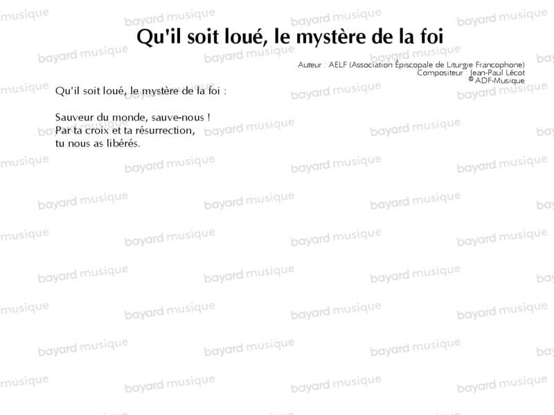 Qu’il soit loué, le mystère de la foi