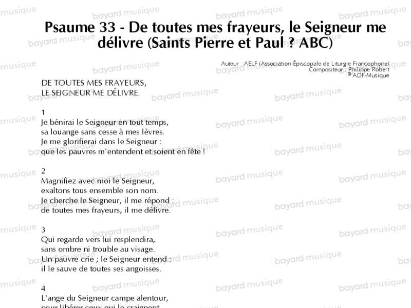 Psaume 33 - De toutes mes frayeurs, le Seigneur me délivre (Saints Pierre et Paul – ABC)