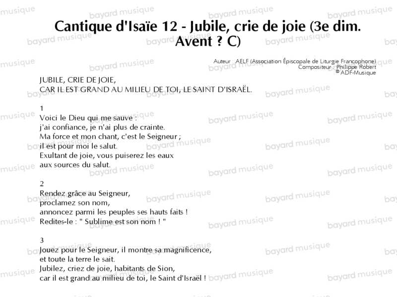 Cantique d'Isaïe 12 - Jubile, crie de joie (3e dim. Avent – C)