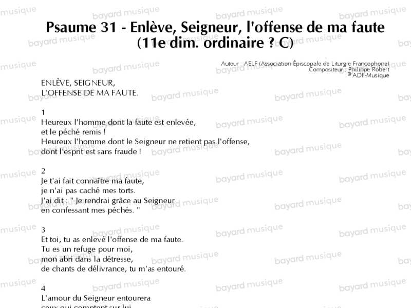 Psaume 31 - Enlève, Seigneur, l’offense de ma faute (11e dim. ordinaire – C)