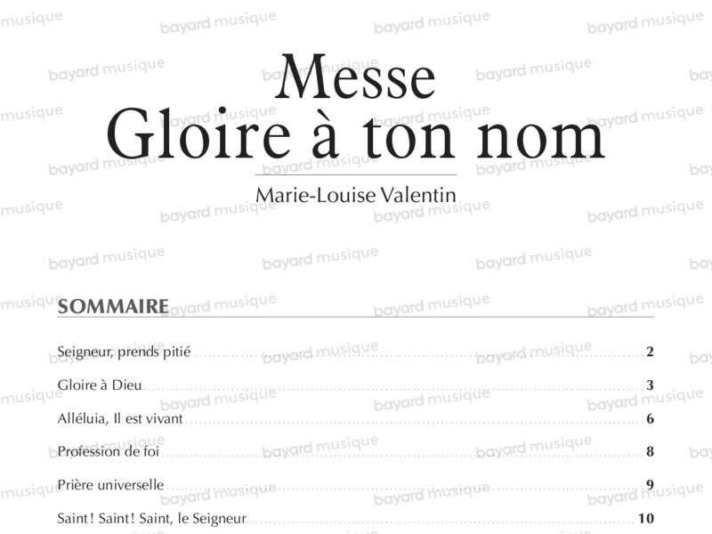 Comprend : Seigneur prends pitié - Gloire à Dieu - Alléluia - Profession de foi - Prière universelle - Saint le Seigneur - Anamnèse - Agneau de Dieu
