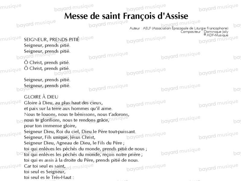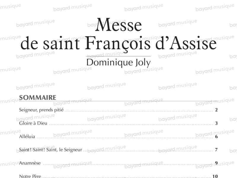 Comprend 7 pièces : Seigneur, prends pitié - Gloire à Dieu - Alléluia - Saint ! Saint ! Saint, le Seigneur - Anamnèse - Notre Père - Agneau de Dieu