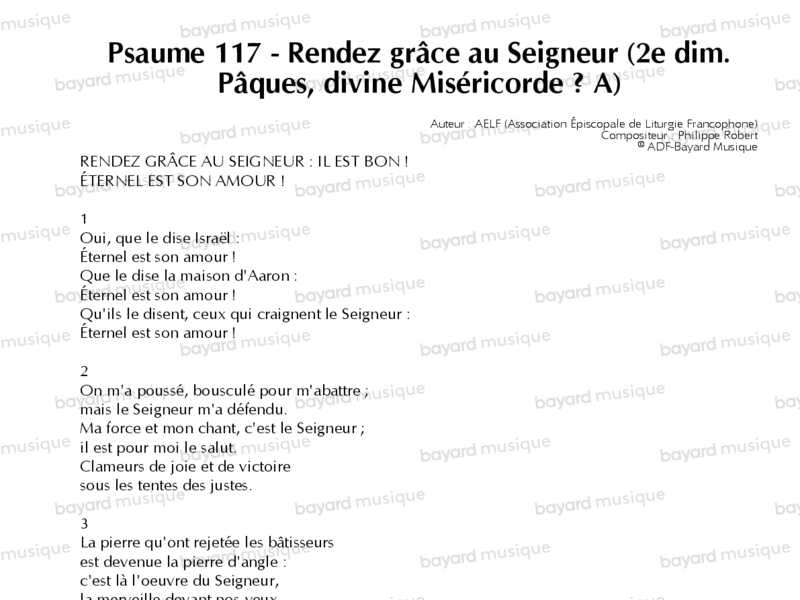 Psaume 117 - Rendez grâce au Seigneur (2e dim. Pâques, divine Miséricorde – A)