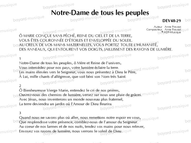 Ce chant met en exergue la mission maternelle de Marie. Elle porte dans ses mains toute l’humanité et chaque personne en particulier afin de les présenter à Dieu et de leur ouvrir des chemins de lumière.