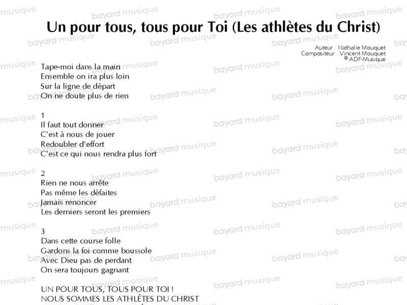 Un pour tous, tous pour Toi (Les athlètes du Christ)