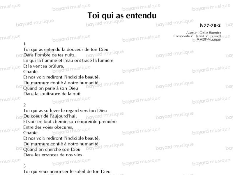 Toi qui as entendu - N77-70-2