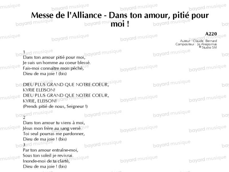 Messe de l'Alliance - Dans ton amour, pitié pour moi ! - A220