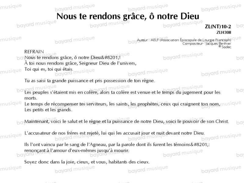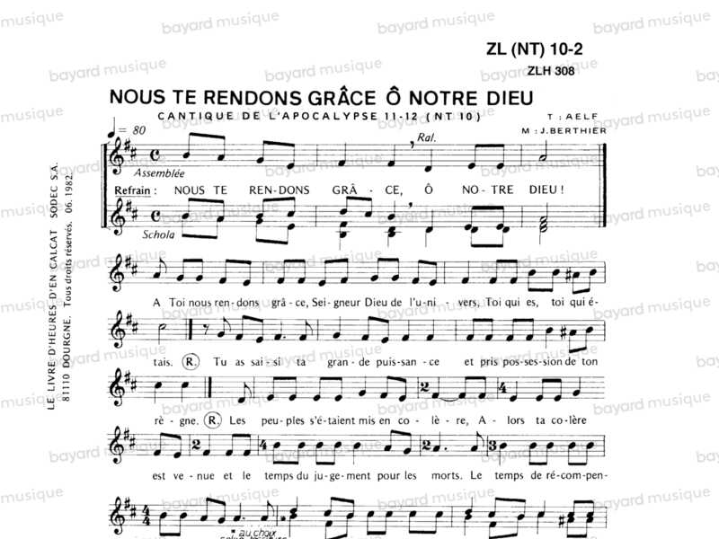 Nous te rendons grâce, ô notre Dieu - ZL(NT)10-2