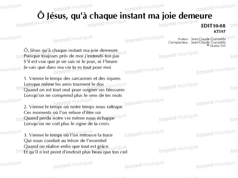 Ô Jésus, qu'à chaque instant ma joie demeure - EDIT10-08