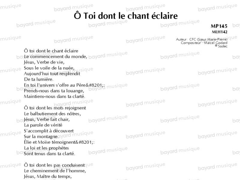 Ô Toi dont le chant éclaire - MP145