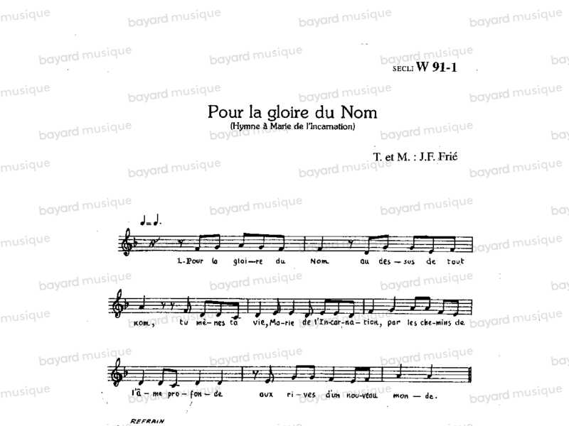 Pour la gloire du nom hymne a Marie de l'incarnation - W91-1