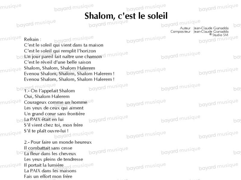 Shalom, c'est le soleil