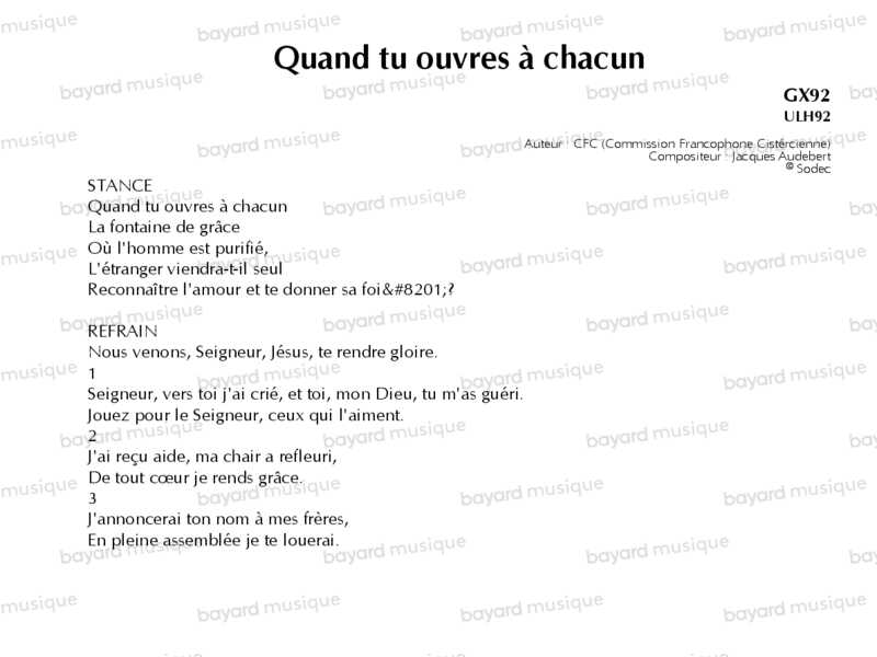 Quand tu ouvres à chacun - GX92