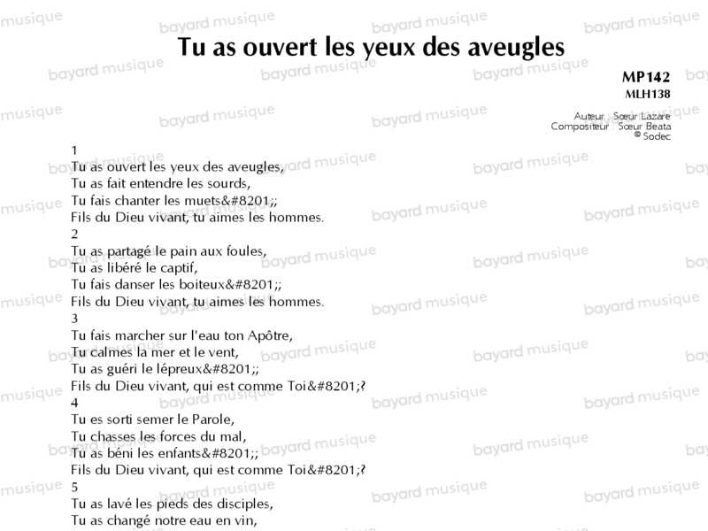 Tu as ouvert les yeux des aveugles - MP142