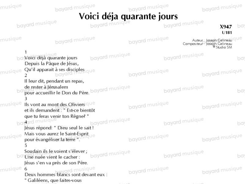 Voici déja quarante jours - X947