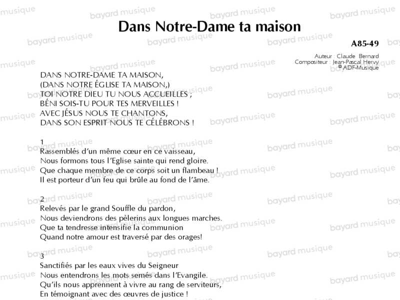 Cantique pour l'inauguration de Notre-Dame de Paris (2024), pour la dédicace d'une église à Notre Dame ou pour une célébration diocésaine.