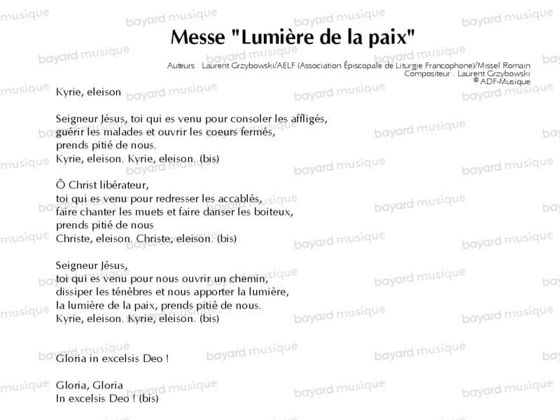Comprend : Kyrie - Gloria - Alleluia - Sanctus - Anamnèse - Agnus Dei