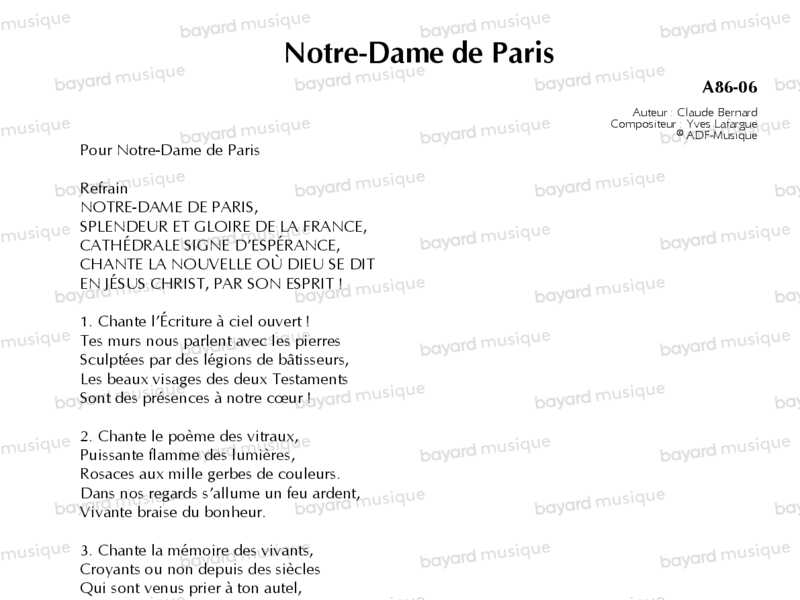 Chant d'entrée pour l'inauguration de Notre-Dame de Paris le 8 décembre 2024 ; il peut être chanté lors de manifestations diverses, les jours de messe de la Dédicace d'une église. Un chant d'entrée pour toutes les fêtes à Marie (8 décembre, 2 juillet, 21 novembre, 15 septembre, etc.)
